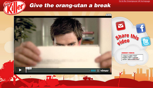 L’affaire, donc : à la mi-mars, Greenpeace a déclenché une campagne online contre KitKat, marque du groupe Nestlé, responsable à ses yeux de la déforestation de l’Indonésie pour la production de l’huile de palme.