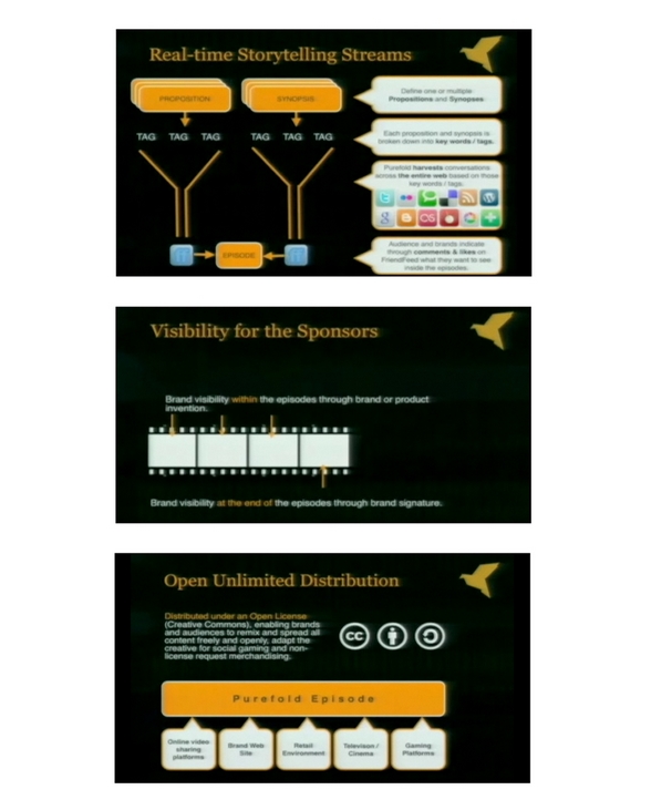 L’échec du projet Purefold outre-Atlantique nous a en effet récemment démontré à quel point cet exercice est périlleux. Purefold était annoncé comme une production hybride d’épisodes vidéo destinés au web et à la télévision, autour de l’univers du film Blade Runner. Mêlant donc déploiement transmedia, contenu généré par l’utilisateur (la réalisation des séquences émanant des suggestions proposées par les créateurs en herbe et internautes contributeurs en ligne), financement par les marques (par le biais d’un habile prototype placement) tout cela cautionné par une figure du cinéma mondialement reconnue en la personne de Ridley Scott ! Et sous licence Creative Commons !