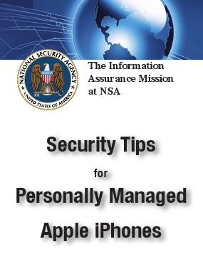 On peut également se reporter au manuel de sécurisation des iPhone publié par la National Security Agency américaine (chargée d’espionner les télécommunications du monde entier, mais également de sécuriser celles des Américains), publié en décembre 2009, et dont la plupart des conseils peuvent également s’appliquer aux autres modèles de téléphones portables.