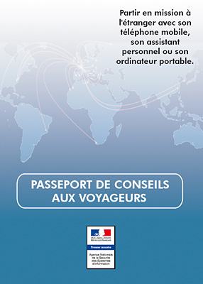 Sous-titré “Partir en mission avec son téléphone mobile, son assistant personnel ou son ordinateur portable“, le Passeport de conseils aux voyageurs, co-signé Patrick Pailloux, directeur général de l’Agence nationale de la sécurité des systèmes d’information (ANSSI, rattachée au Secrétaire général de la défense nationale), et Régis Poincelet, vice président du Club des directeurs de sécurité des entreprises (CDSE), rappelle lui aussi que “les cybercafés, les hôtels, les lieux publics et parfois même les bureaux de passage n’offrent pas de garantie de confidentialité. Dans de nombreux pays étrangers, les centres d’affaires et les réseaux téléphoniques sont surveillés. Dans certains, les chambres d’hôtel peuvent être fouillées“.