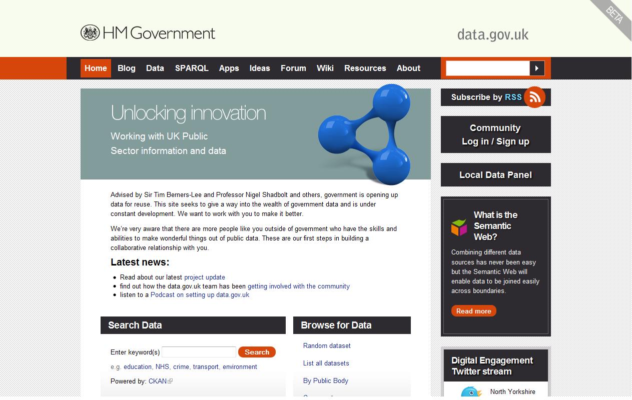 Data.gov.uk a été officiellement lancé en janvier 2010. Le site a été perçu comme une victoire de la communauté pro-opendata. Le Royaume-Uni voit désormais fleurir les sites web et les applications basées sur les données libérées, en particulier sur les données cartographiques liées aux codes postaux, autour de la dernière élection générale de mai 2010.