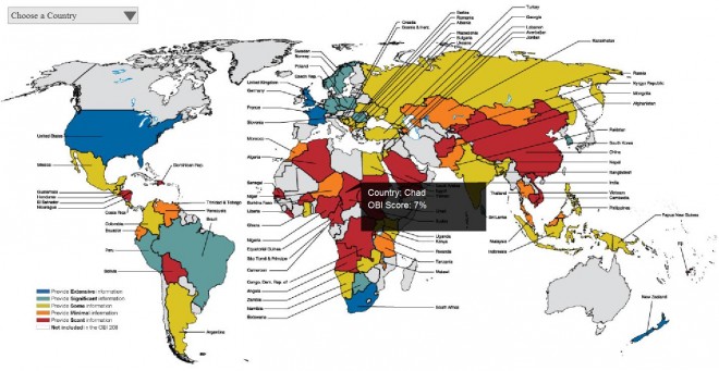 L’International Budget Partnership rapporte que 80% des pays ne rendent pas suffisament compte de leurs dépenses budgétaires. Cet organisme militant pour l’accès du public aux données budgétaire fournit aussi une carte des pays les plus transparents.