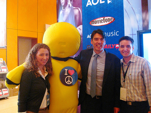 médias Time Warner, le concurrent AOL a carrément entrepris d’embaucher une armée de journalistes dans le cadre de son programme Seed : 500 rédacteurs salariés travaillent d’ores et déjà pour la compagnie dirigée par Tim Amstrong (sur la photo, il est en cravate: regardez comme il est content).