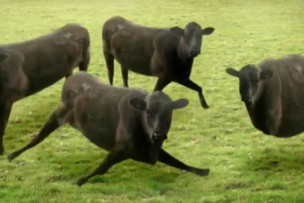 L’animateur et illustrateur anglais déjanté Cyriak Harris est de retour avec Cows & Cows & Cows. Un simple fond de prairie, des vaches noires, une musique répétitive, et c’est parti pour quelques minutes de voyage psychédélique. Les vaches dansent, se multiplient, se déforment et se transforment en rythme.