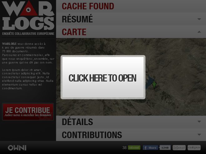 That is why the OWNI crew decided to create and develop an online application enabling people to crowdsource the journalistic work. You will be provided a tool to review and assess the countless reports and documents remaining unclear. Once we will have collected enough data and analysis, we will be able to provide you with new insights and understandings of the situation.