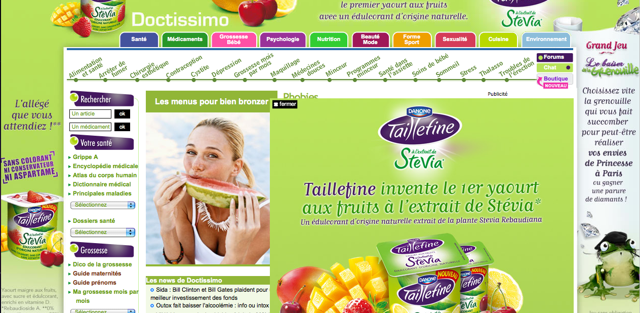 Capture d'écran de la HP de Doctissimo le 22 juillet dernier. Derrière la publicité, vous trouverez de l'information médicale.