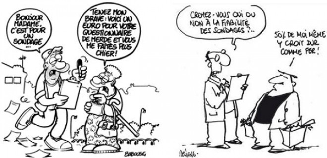 L’institut de sondage joue certes son rôle de conseil, mais il est avant tout là pour se porter garant de la fiabilité des résultats, quand bien même les questions seraient non pertinentes ou mal posées. L’institut n’est pas tout puissant : il est souvent pieds et points liés aux désidératas du client, dans un contexte concurrentiel très fort. La super caste des professeurs en science politique, sorte de lobby anti-sondage, use de leur verve outrancière et mène la fronde, refusant catégoriquement d’entrer dans la sphère des considérations techniques. Et se défendre attise systématiquement la suspicion… De trop rares spécialistes (comme le très fiable Dr Panel sur Rue89) aiment encore soulever le capot et comprendre comment ça marche.