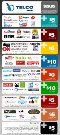 Il n’exclue pas la mise en œuvre d’“offres différenciées” (sur les mobiles seulement selon Libé, partout selon Écrans). Sur Internet, cela signifierait la fin de l’accès illimité (et d’offres simples) pour tous avec un saucissonnage des offres dont la tarification pourrait varier selon le trafic, le débit, ou la qualité des services.
