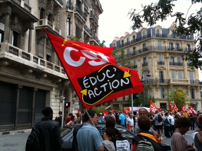 [11h24] Du côté de Marseille, Chon86 fait état d’un cortège hétéroclite: “La CGT Éducation est là comme hier. Les autres branches sont présentes (docker, livre)”: