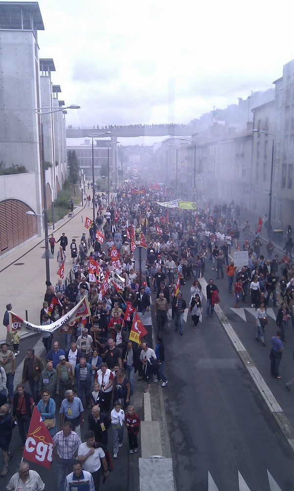 À Auch : “de mémoire de certains syndicalistes, on n’avait pas vu pareille mobilisation depuis le plan Juppé en 1995″, rien que ça ! Nos collègues de Sud Ouest rapportent 3 à 6 000 participants dans la capital du Gers (soit presque 25% de plus qu’en juin) devant le siège du Medef (via @mygreg)