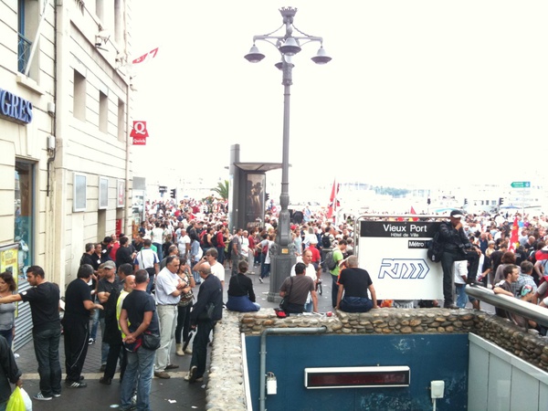 [12h35] Selon @chon1986, “Marseille est noire de monde ! Le cortège bloque toute la rue de la République, le Vieux-Port est rempli et la Canebière est toujours aussi pleine. Le cortège n’arrive pas à avancer”
