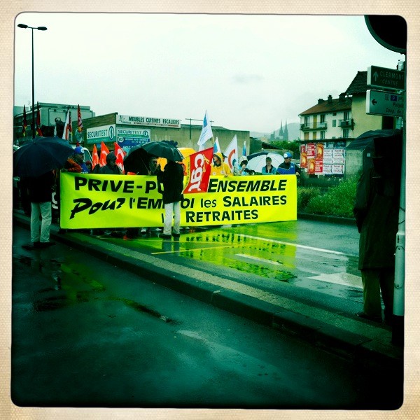 [11h15] A Clermont-Ferrand, malgré la pluie, la mobilisation semble prendre, comme le dit Cécile Jandau, “Il semblerait que le privé ne soit pas mal représenté” :