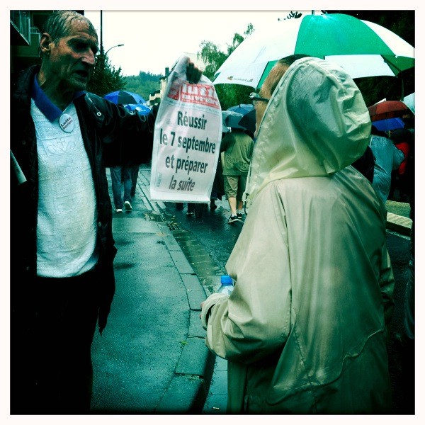 [12h18] @Cecile_Jandau continue son livetweeting depuis Clermont-Ferrand: “Détermination et inquiétude se lisent sur certains visages comme celui de ce vieux monsieur, sans capuche, ni parapluie”
