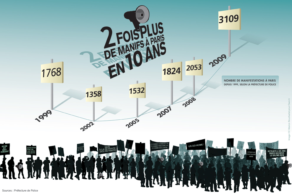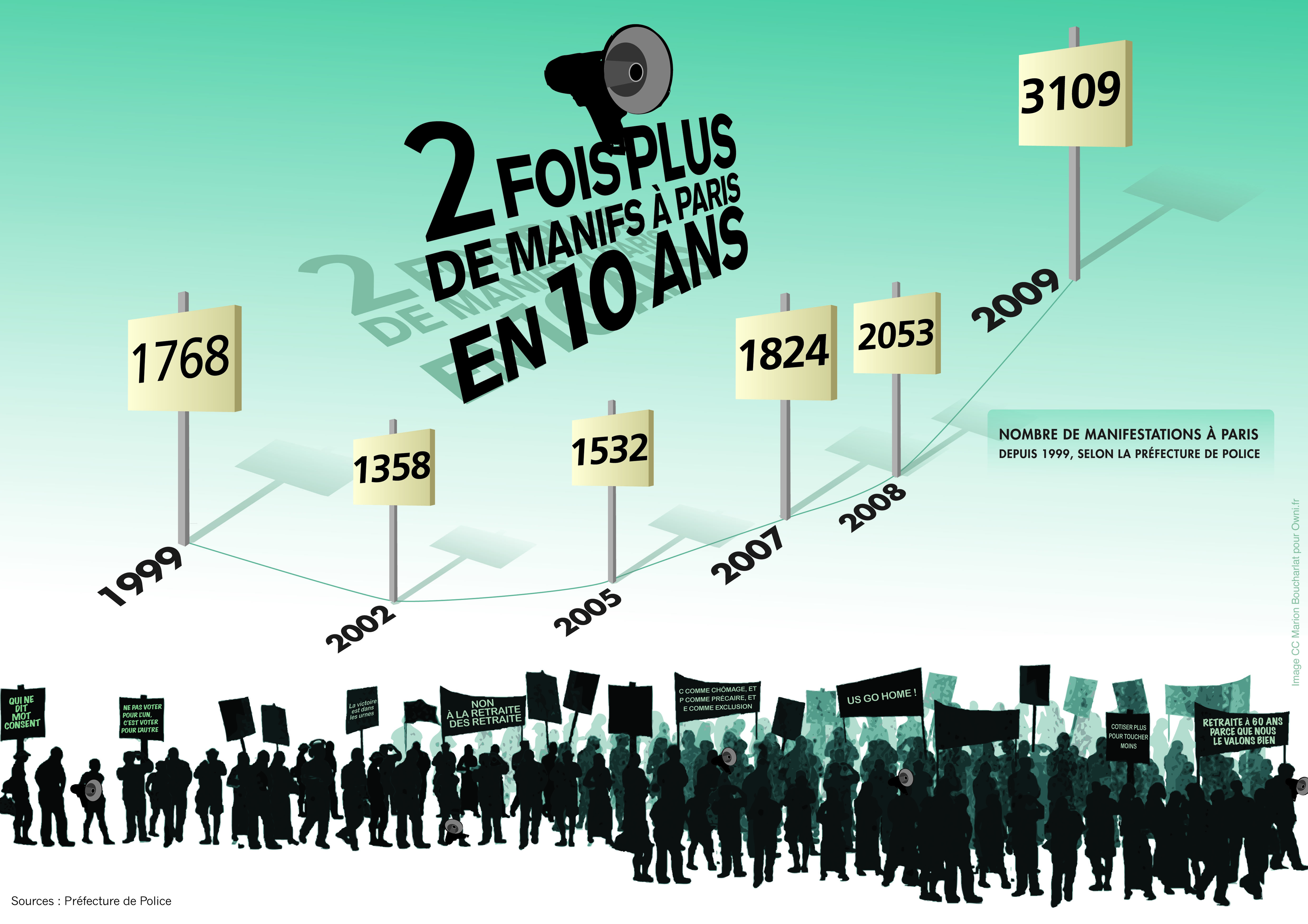 Paris a vu 3000 manifestations en 2009, contre 1500 en 2006. Pourquoi une telle augmentation? On aimerait avoir la réponse, mais la police a refusé de nous en dire plus. En attendant, les hypothèses restent ouvertes.