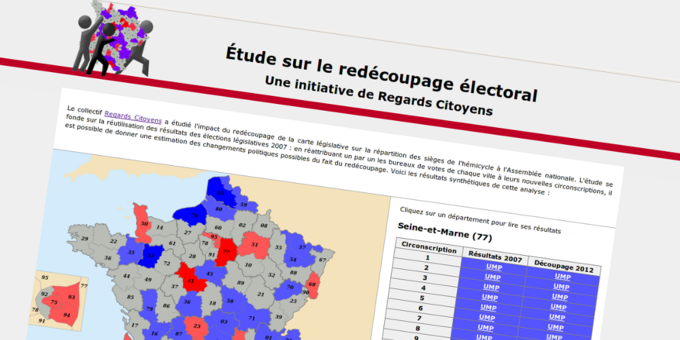 Traveling south to France, we come across Regards Citoyens. This site, which is accessible on Facebook, Twitter and Identi.ca, is an umbrella of several transparency solutions. NosDéputés.fr is an online monitoring system of parliamentary activities. It presents 642 parliament members, profiling their activities from last 12 months (here is an example). I personally like the usage of tag cloud featuring words currently used by the National Assembly and graphs of current parliamentary activities on their main site. A separate part of the site is dedicated to site users and their activities related to monitoring the representatives. Another project, originally called Simplifions la loi 2.0, is currently a subpage of Nosdeputes.fr. It documents current parliamentary work. Étude sur le redécoupage électoral is a site providing great insights into the proposed changes of the constituency limits, looking also at the impact of those on future elections.