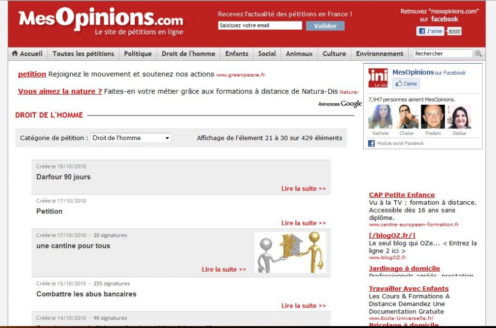 Capture d'écran issue du site http://www.mesopinions.com/ réalisée le 18/11/2010.