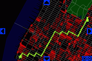 Pour revenir à la sousveillance, tournons-nous vers le projet isee [en], une application web qui vise à cartographier les caméras de surveillance. Chacun peut ainsi repérer ces éléments et les placer sur une carte participative. L’idée sous-jacente est de proposer des parcours dans la ville qui permettrait d’éviter les caméras en prenant des “chemin de surveillance minimale” (le trait vert). Dans l’exemple ci-joint, les cartes proposent de visualiser la position de ces outils de surveillance dans le cas de Manhattan.