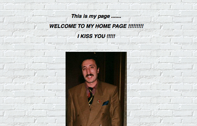 - Le message “Welcome to my home page”, marque d’authenticité sur les sites personnels, «slogan du web 1.0»2 . Selon Lialina, «cela montre qu’une vraie personne a créé le site et non un quelconque département en marketing ou un système de gestion de contenu».