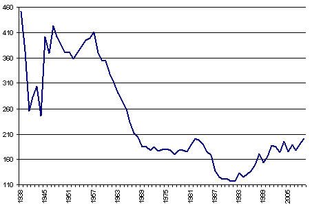 Fréquentation des salles de cinéma en Franceen millions de spectateurs par an, depuis 1938