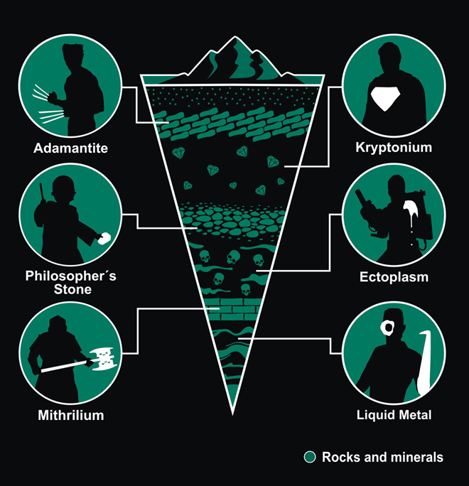Cette semaine fut également l’occasion de découvrir l’artiste Eduardo San Gil et son travail qui illustre comment les différentes roches et autres minéraux sont utilies à la bande-dessinée et notamment aux personnages de Comics. On appréciera ces étranges métaux et la façon dont les utiliser.. Toujours pratique à savoir !