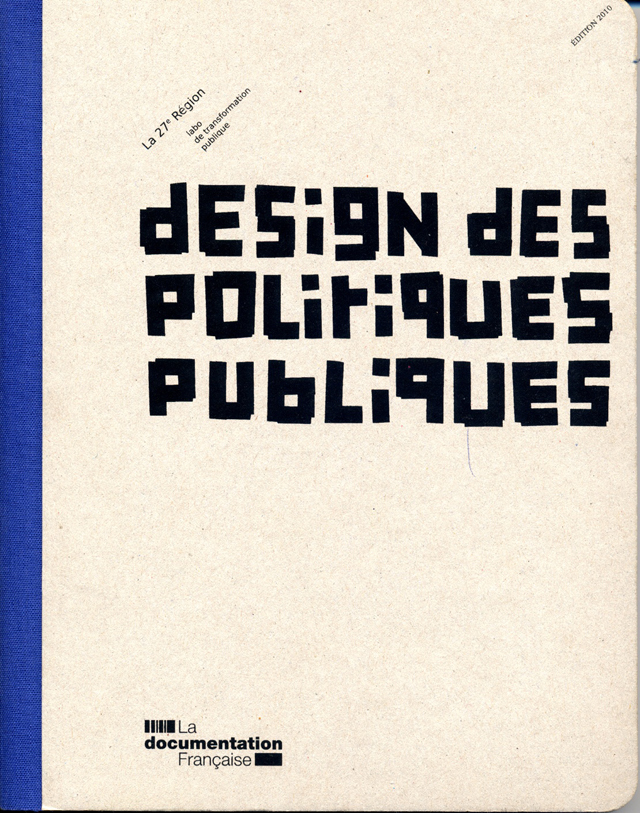 Publié en avril 2010 à la Documentation Française, le Design des politiques publiques est la première édition de la 27ème région, « laboratoire de transformation publique ». Issus du milieu du design, les acteurs de cette structure se proposent de réviser la conception de projets à caractère public à travers des méthodes liées au design.