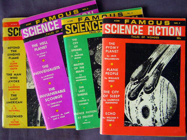 Une culture SF nourrie, donc, par une pléiade de livres anciens, mais aussi, véritables jalons pour une culture de fan, d’affiches, et des premiers produits dérivés et premières revues – les pulps, dont Science Wonder Stories, revue où apparaît pour la première fois le terme “science-fiction”, en 1929.