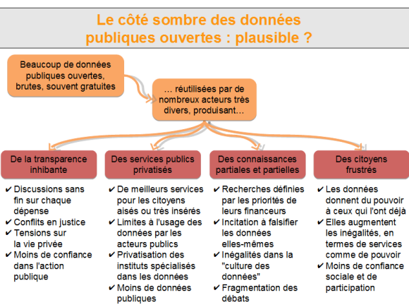 Tous ceux qui, comme nous dans le cadre du programme Réutilisation des données publiques de la Fondation internet nouvelle génération, s’engagent en faveur de l’ouverture et de la réutilisation des données publiques, en espèrent des résultats féconds en termes de qualité de vie, de cohésion sociale, d’innovation et de croissance. Mais les choses pourraient se passer tout autrement. Nous devons commencer à penser aux conséquences de l’ouverture des données, pour nous assurer qu’elles soient majoritairement positives.