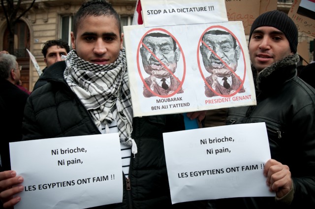 Le ton est donné par les manifestants rassemblés aujourd’hui à Paris près de l’ambassade d’Egypte. Dans la foule, de nombreux Égyptiens, mais aussi des Tunisiens et Algériens, venus “défendre la cause de [leurs] frères égyptiens” et relayer l’appel à la démission du gouvernement Moubarak.