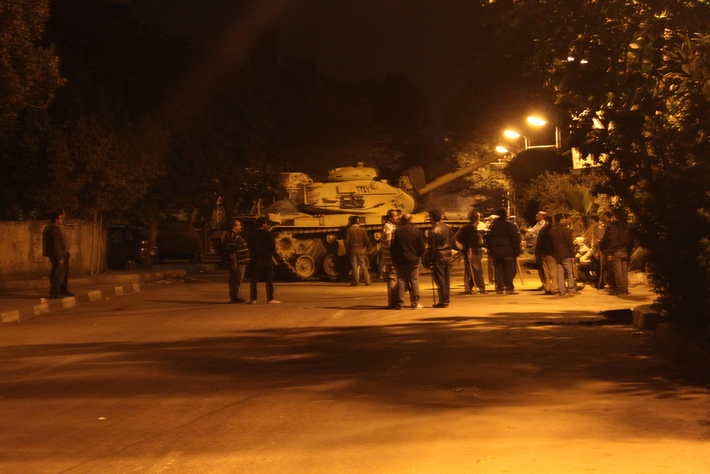 Il est plus de minuit, dans le quartier de Dokki, au Caire [cliquez pour accéder à la carte GoogleMap], à quelques minutes à pied de la place Tahrir, épicentre des mouvements de protestation contre le régime Moubarak. Je suis de sortie cette nuit pour observer les comités qui s’organisent pour la protection du quartier. Un quartier plutôt aisé et calme en temps normal, devenu lieu de passage vers la place Tahrir depuis le début de la révolte.