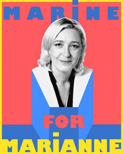 Crédits photo via Flickr, Marine Le Pen au défilé annuel du FN le 1 er mai 2008 par Neno [cc-by-nc-nd] et Marine Le Pen for Marianne par TheManolo [cc-by-nc-sa] ; Capture d’écran, Le Parisien ;