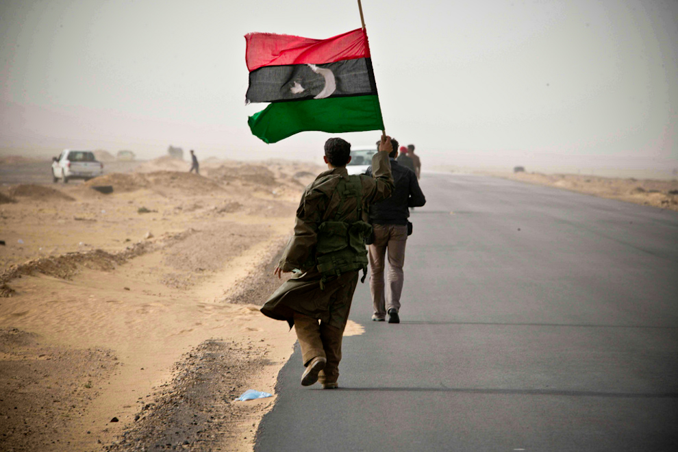 Crédits photo via Flickr: Avion de chasse par Mashley Morgan [cc-by-sa] ; Combattants rebelles en Libye par Nasser Nouri [cc-by-nc-sa]