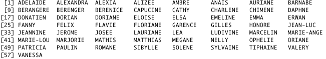 Mais à la lecture des deux listes, il m’apparaît que les prénoms sont un peu “vieillots” malgré le rafraîchissement régulier. Je passe sur le fait que certains prénoms sont proposés avec des variantes orthographiques étranges (Garence, ou Edgard, qui semblent moins “français” et moins “usités” que Garance ou Edgar). Dans la série des « S » on trouve ainsi Solange, Ségolène, Sylvain ou Sylviane… qui sont un peu datés. Ce sentiment est conforté par un petit traitement statistique. On peut affirmer, à partir du “fichier des prénoms” de l’INSEE, qu’il y a plus de 80% de chances qu’un Français pris au hasard, s’il (ou elle) est né(e) avant 1970, porte l’un des prénoms de la “liste des prénoms français” (celle de 2010). Mais s’il est né en 2008, il n’y a plus que 30% de chances. La mise à jour n’arrive pas à enrayer la perte rapide de pertinence de la liste au regard des naissances en France. Les nouveaux prénoms n’entrent pas assez vite. La nouvelle liste représente certes mieux les naissances récentes, mais pas beaucoup mieux.