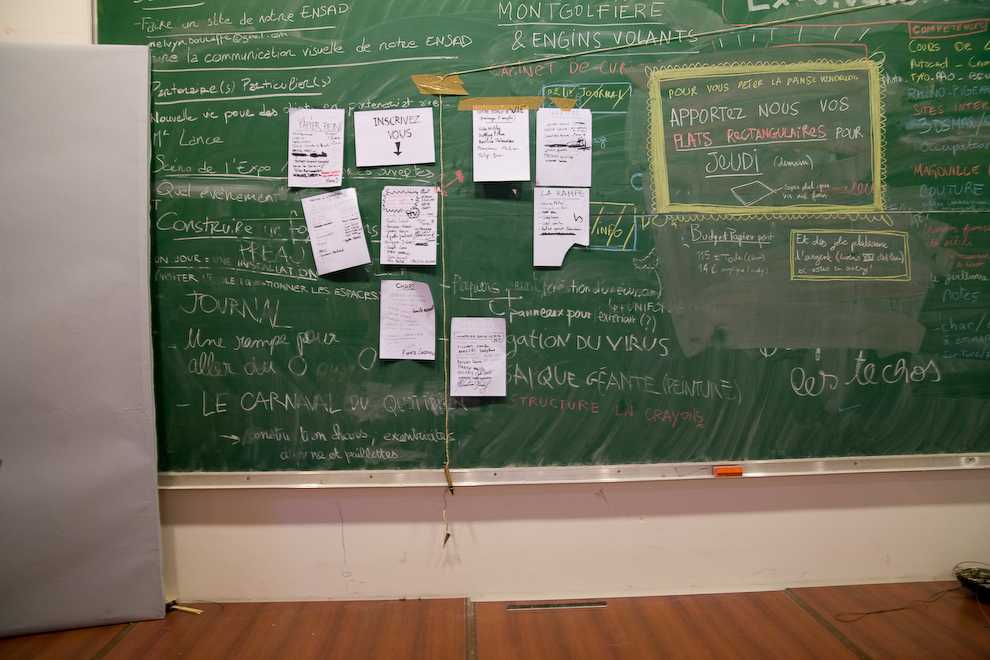 Ils ne jettent pas la pierre à leur directrice dont la position évolue. À l’origine, niant l’existence d’un mouvement étudiant, elle avait interdit la réquisition d’une salle et obligeait les élèves à mener leur “workshop” entre 17h et 21 heures. Aujourd’hui ? Elle est “ravie et nous facilite beaucoup les choses” explique Elliot en souriant. Publicité positive pour l’école : les élèves réfléchissent encore ! Elle garde juste en tête le respect de l’équilibre entre pratique et cours : “l’interdisciplinarité n’existe que si la disciplinarité existe”.