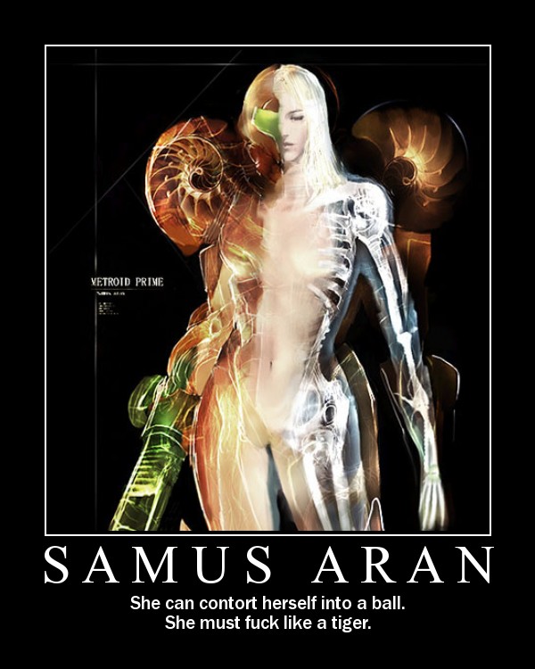 Pour les ignares qui n’ont jamais joué à un Metroid, il faut savoir que l’armure de Samus lui permet de se réduire en boule (“morphball” dans le jeu) et ainsi d’accéder à des lieux difficiles d’accès ou de déposer des bombes dévastatrices. Ici, c’est juste une occasion de spéculer sur sa vie sexuelle. D’autres choses existent avec son armure, qui se trouve elle aussi pouvoir être sexualisée.
