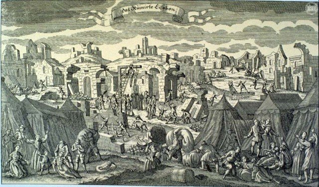 Ruines de Lisbonne, gravure allemande, 1755