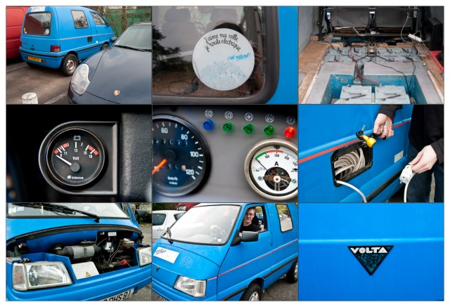 Samuel utilise sa voiture depuis 2008. De deux antiques Volta hors d’état, il en a fait une, dont la consommation lui revient de 1 à 2 euro(s)/100 km. Pour l’équivalent essence, une Kangoo Express Compact par exemple, comptez 8 litres/100 km, à raison de 1,5 euros le litre, sans oublier les rejets de CO2. Bien sûr son confort est spartiate mais cela relève d’un choix politique, au sens étymologique du terme : quelle vi(lle)e je veux ? Le jeune ingénieur en électronique a aussi bricolé une trottinette, dont la batterie se loge… dans une boîte de biscuits en fer, fidèle à la devise du hackerspace : « Il faut utiliser les choses comme elles doivent être utilisées… ou pas ! » Elle est ornée d’un autocollant “Rêve générale”. Pour l’heure, à leur petite échelle, le rêve est bien une réalité.