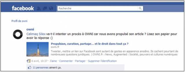Mon billet de la semaine dernière a par exemple été « repropulsé » sur la plaforme OWNI, et j’ai beaucoup ri en voyant comment l’équipe de la soucoupe avait introduit l’article sur Facebook :