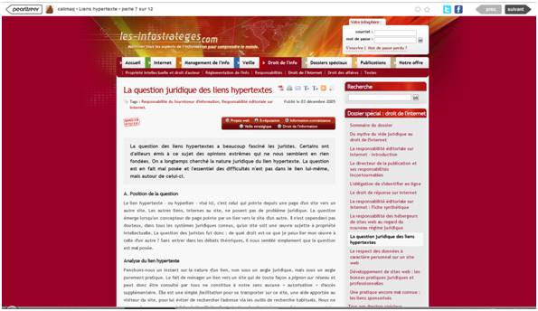 Dans mon billet, je pars du principe que le droit français est applicable aux pratiques de curation et de propulsion de contenus sur Internet. Murielle Cahen fait de même dans son analyse des boutons de partage sur Facebook.