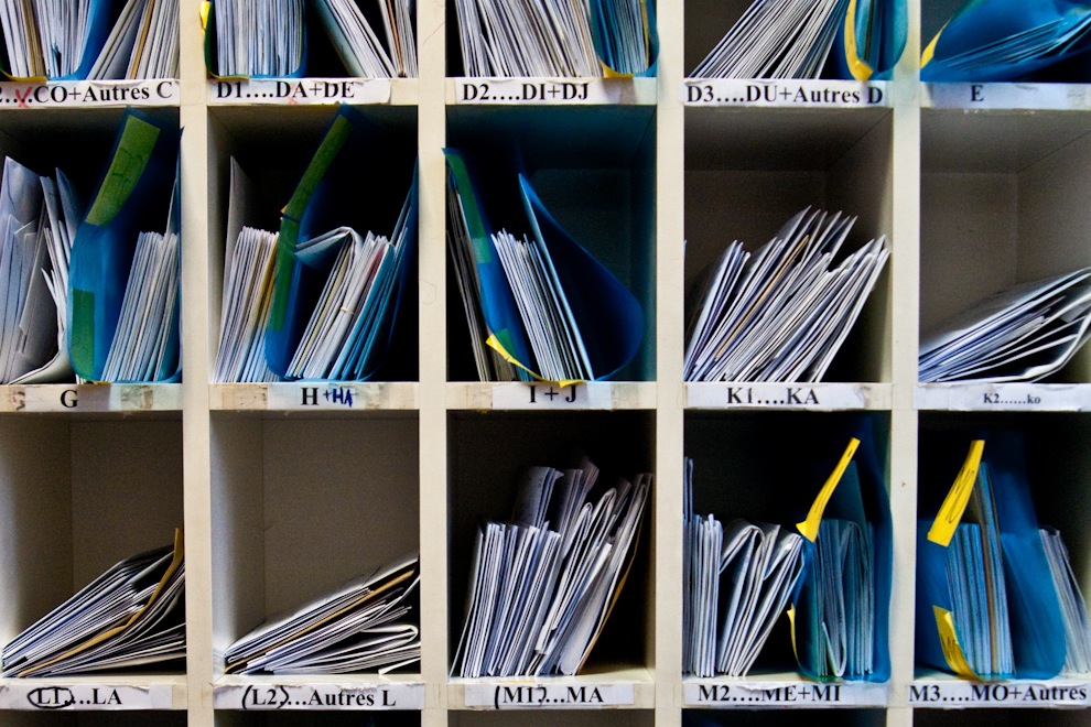 Mamoudou, le vigile présent à l’accueil est beaucoup plus tranquille : « de temps en temps, une personne s’énerve, mais cela reste rare ». De fait, c’est le calme total. Chacun leur tour, les gens se présentent au guichet lorsque leur numéro de passage a été tiré. Une femme à l’accent russe prononcé présente son pass Navigo : « Je sais pas utiliser, c’est pas moi qui a carte. » Son nom suffit à la retrouver dans la base de données. Bénéficiaire de l’AME, domiciliée depuis 2006, Nadia sait immédiatement qu’elle est sans-papier. Dans le casier à la lettre V, par chance trois lettres, la femme n’est pas venue pour rien. Pourtant, c’est tout comme : « Vous n’avez pas grande enveloppe ? » La déception ferme son visage, elle part.