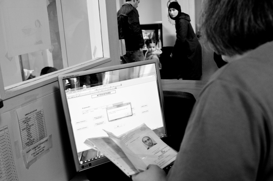 « Bon, name, prénom, sexe, masculin, c’est ça ? », lance Gérard en riant. Car il a beau côtoyer la misère, il se refuse pour autant à faire dans le pathos: « Nous ne sommes pas là pour les plaindre, il ne faut pas leur faire ressentir leurs difficultés. » Entre nécessaire rigueur administrative et humanité tout aussi nécessaire, la petite équipe gère les affaires.