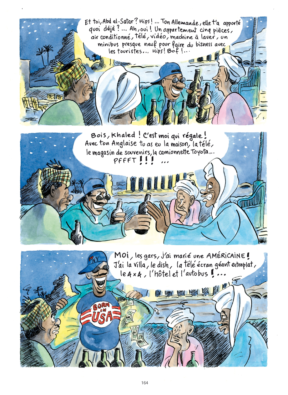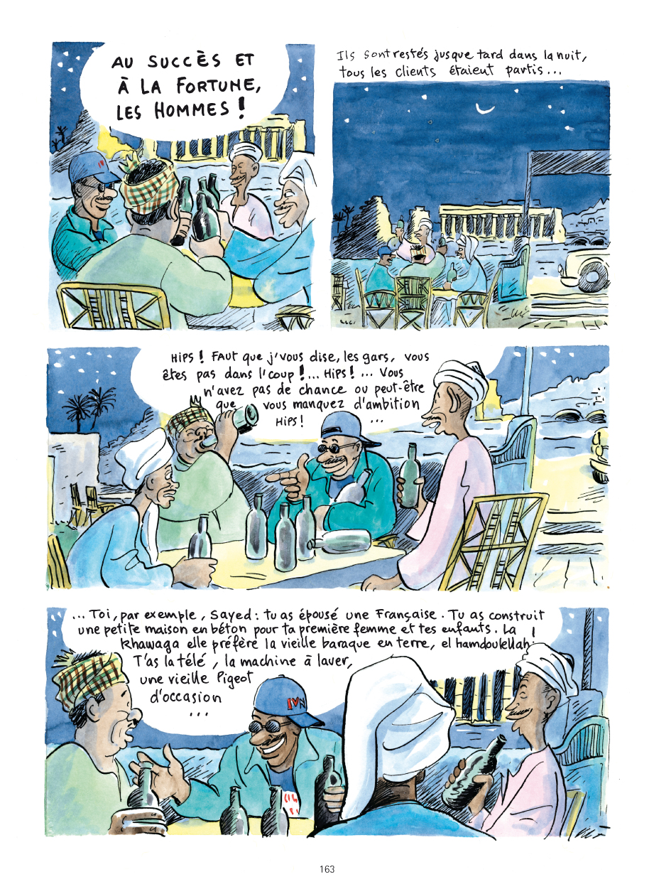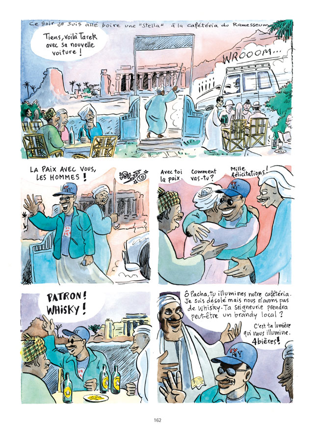 Face à l’afflux des touristes et à la menace des attentats islamistes, les autorités décident en 2006 de créer une vaste zone désormais inhabitable. Objectif : créer une sorte de Disneyland des pharaons, au prix d’une délocalisation forcée du village de Gournah. Sans trahir le suspense, la fin est triste… mais la Révolution égyptienne pourrait bien changer le cours des choses. Pour les lecteurs d’OWNI, voici un extrait de l’album et une longue discussion avec ses auteurs.