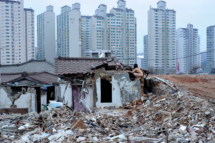 Miru Kim s’est photographiée nue au sommet de la tour Saint Jacques, dans les égouts de New York et les citernes d’Istanbul. Elle en ramène des images de fin du monde, étrangement romantiques.