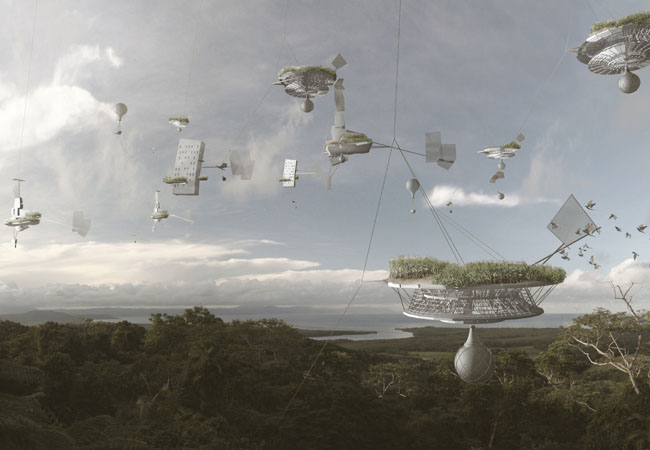 Bien que vendues comme émancipatrices, l’idée maîtresse qui sous-tend les cités volantes est en réalité de pouvoir se détacher (au sens propre) de ses congénères au sein d’un paradis privé. Cette observation est d’ailleurs valable pour les autres figures de l’utopie techniciste et qui tendent aujourd’hui à se concrétiser ; on pense notamment aux projets d’îles crées de toutes pièces dans le Golfe, ou aux projets de villes écologiques comme Masdar, en réalité réservés à quelques privilégiés.