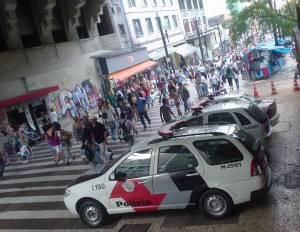 Ambiance informelle sous présence policière, Republica, Sao Paulo (photo : Microtokyo).