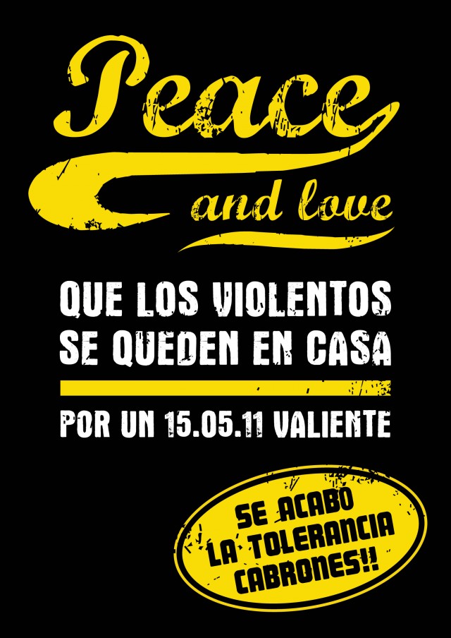 Paix et Amour - Que les gens violents restent chez eux - Pour un 15 mai courageux