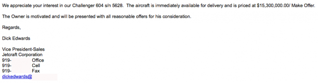 En creux, cet ancien d’Airbus confirme “l’identité” du jet, mais refuse obstinément d’éclaircir la situation de l’individu qui l’a sollicité pour réaliser la vente.