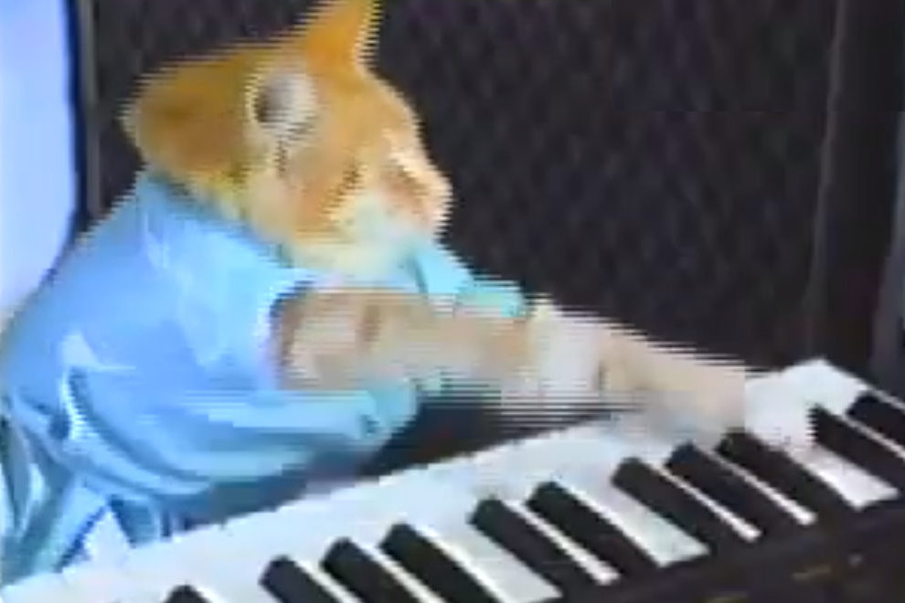 Au milieu de ces chats, il en est un qui fait du piano. Vidéo tournée en 1986 par Charlie Schmidt, selon la bible des mèmes Know Your Meme, la vidéo est mise en ligne sur Youtube en 2007. Un chat, déguisé d’un kimono bleu tape sur un clavier.