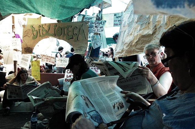 Des amis argentins nous disent : « Tout ça est très intéressant, mais ce n’est pas l’Argentine en 2001. En 2001 ce sont ceux qui avaient été dépossédés par la crise qui ont pris la ville. Ici ce n’est pas le cas, on ne voit pas les signes de la crise ». Penser un mouvement en terme de « ce qui manque » n’a pas d’intérêt, ce qui importe c’est de penser à ce qu’apporte Sol à ceux qui ont été le plus touchés par la crise économique : ceux qui ont perdu leur maison, les chômeurs de longue durée, ceux qui sont en marge et ne peuvent plus participer à la consommation de biens de tous les jours, ceux qui, sans papiers, n’ont aucun espoir de régulariser leur situation parce qu’ils n’ont pas de contrat de travail, ou ceux qui ont des papiers mais qui les ont perdus parce qu’ils ne pouvaient pas cotiser suffisamment…