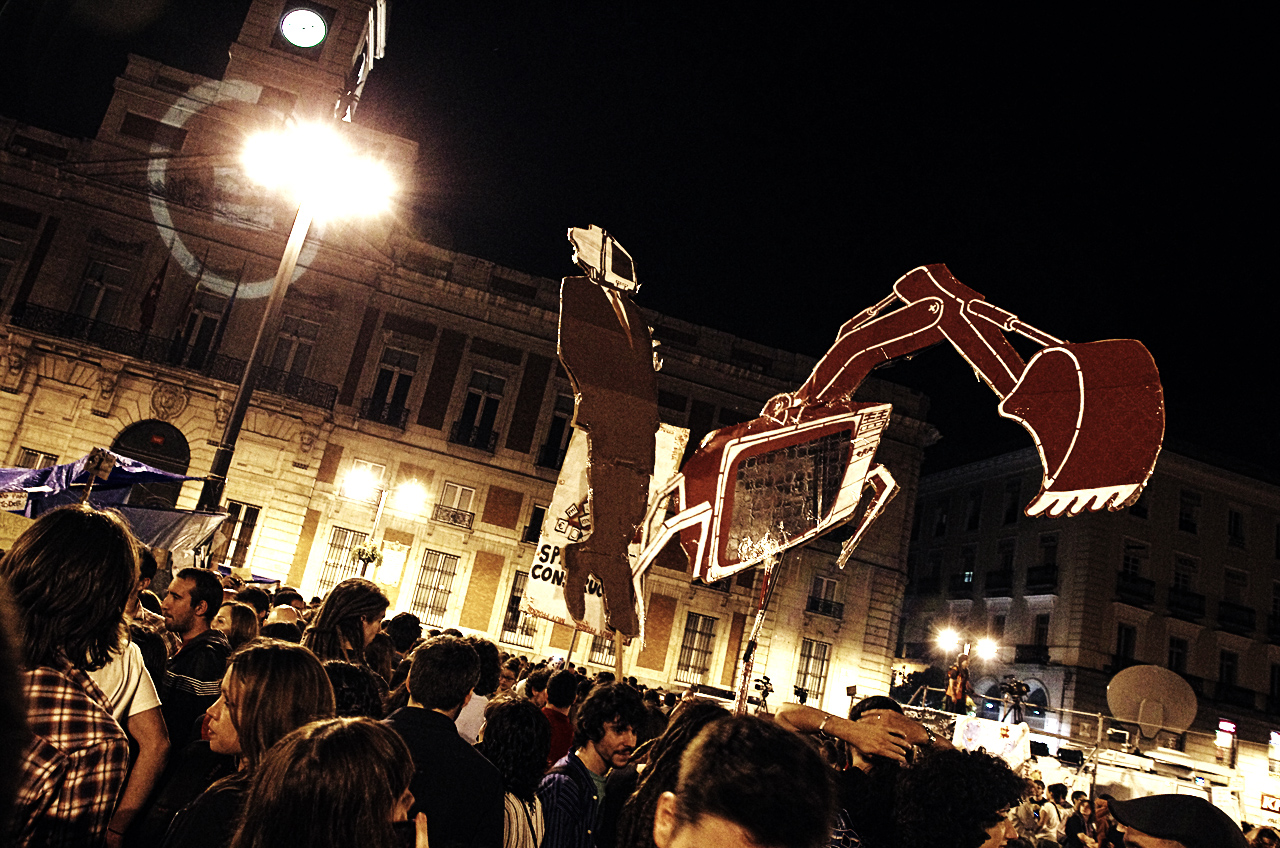 Les campements, celui de Sol et ceux des autres villes, continuent. Un ami dit : « Il ne s’agit plus d’aller dans la rue, il faut créer les places ». Sur la base de cette intuition, j’hasarderai l’hypothèse que la place ne se crée que si l’on insiste, si l’on approfondit les éléments qui l’ont rendue possible : en dénominateurs communs minimaux la critique du pouvoir politique, « Une vraie démocratie maintenant ! », et de sa gestion du pouvoir économique, « La crise doit être payée par ceux qui en sont responsables ! » ; la coopération du plus grand nombre comme force pratique qui rend la place réelle et tangible, qui rend le dénominateur commun minimal non seulement habitable mais délicieux, quelque chose qui vaut qu’on en fasse le pari. Contre l’auto-représentation des milliers de collectifs et de luttes qui existaient déjà, avec le risque de balkaniser les lieux, l’événement-Sol nous invite à chercher le point de connexion, le lieu d’où contribuer à ce commun, en partant, bien sûr, de ce que nous sommes mais aussi de ce qui nous rassemble.