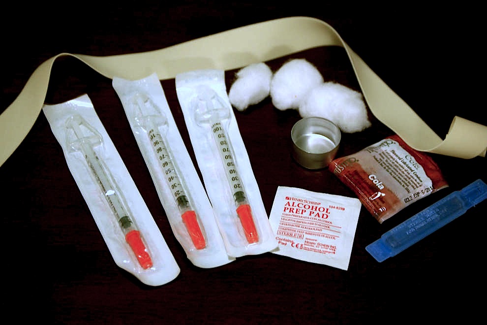 Non, ce n’est pas moi qui ai tout utilisé. Je récolte les seringues, et je ramène des kits propres aux autres drogués. Et pour me remercier, ils me fournissent en doses.